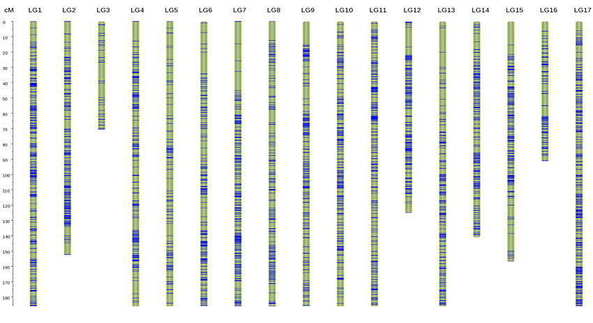 利用全基因組或簡(jiǎn)化基因組測(cè)序技術(shù),進(jìn)行群體SNP檢測(cè)和注釋,開放遺傳標(biāo)記并進(jìn)行過濾,進(jìn)行連鎖分析,構(gòu)建高密度遺傳圖譜。