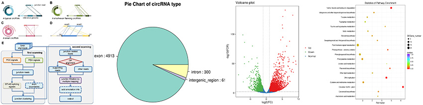 環狀RNA(circular RNA)是5’端和3’端共價結構閉合環狀的非編碼RNA,是廣泛存在于動植物中的一種特殊的lncRNA,具有很高的保守性和組織特異性,獨特的環狀結構使其不易被RNase降解,在胞內具有較強的穩定性。按其來源可分為內含子CircRNA和外顯子CircRNA兩類,主要通過(1)作用于轉錄組因子,(2)競爭性結合miRNA,(3)結合核糖體誘導開環再重新表達等三種方式實現其調控基因表達的功能。CircRNA一經發現就因其獨特的存在形式引起科學家的廣泛興趣,隨著近幾年測序技術的發展,CircRNA檢測技術亦日漸成熟。